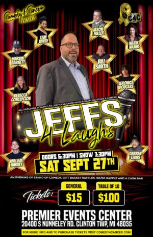 Comedy 4 Cancer Presents ' Jeff's 4 Laughs" Saturday September 27th at the Premier Events Center in Clinton Township.